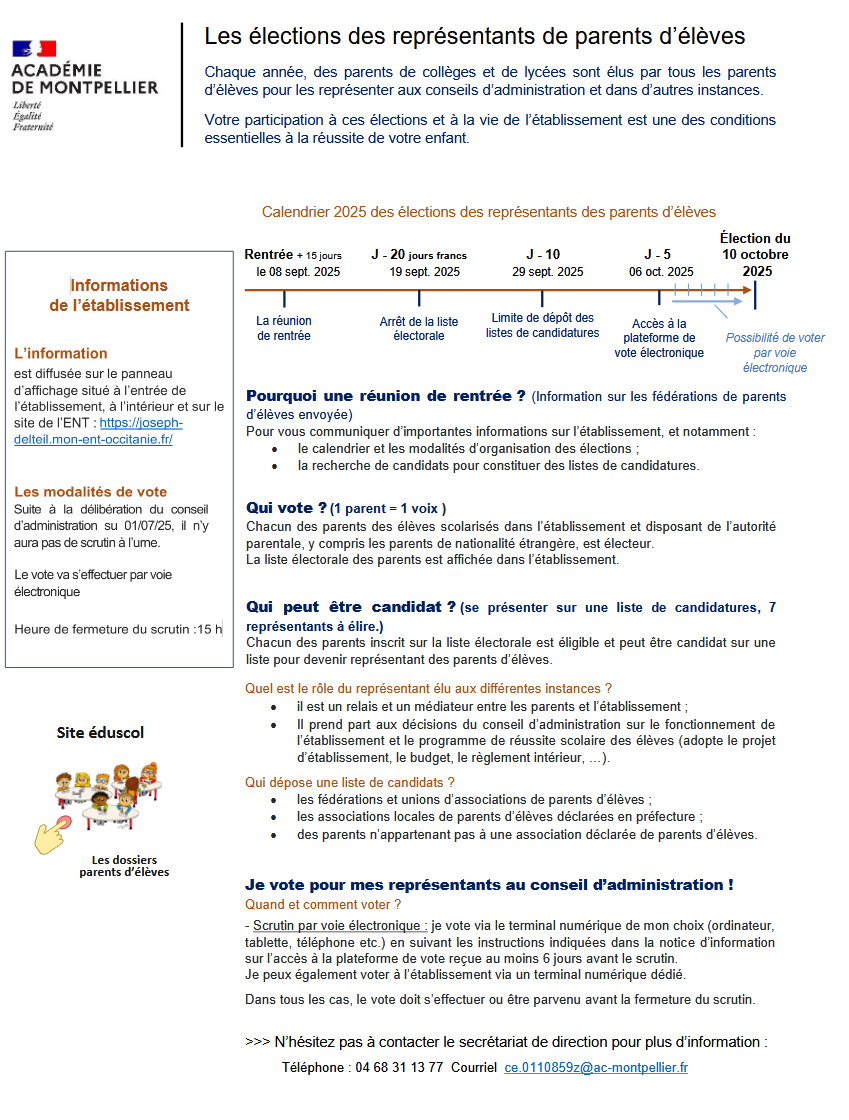 Du Lundi 06 au Vendredi 10 octobre 2025 - L'ensemble des représentants d'élèves du Collège Joseph Delteil pourra voter électroniquement pour désigner leurs représentants au conseil d'administration de l'établissement.